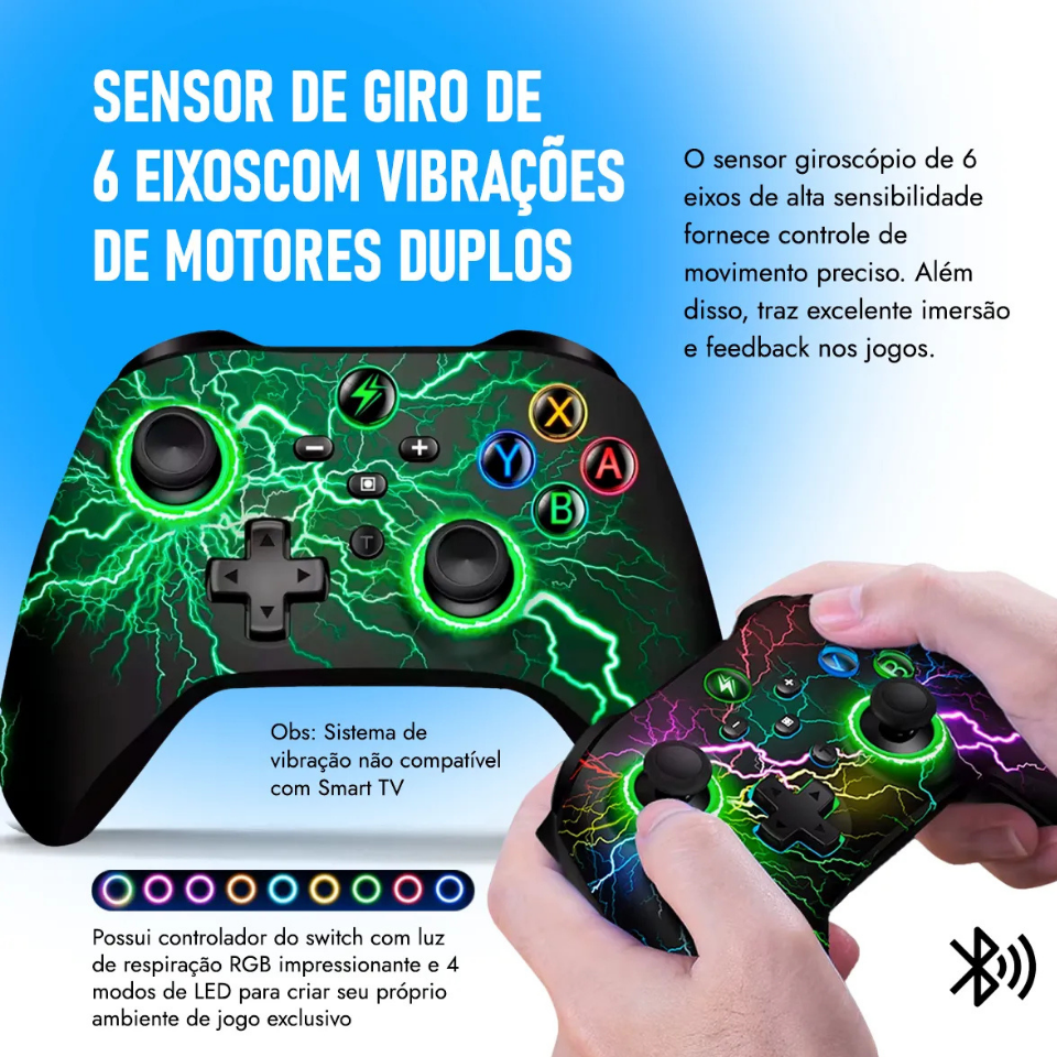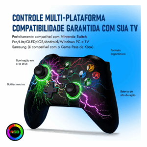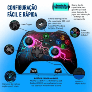 Design ergonômico e conectividade fáceis fazem dele uma escolha prática e estilosa para uma experiência de jogo excepcional na sua TV.